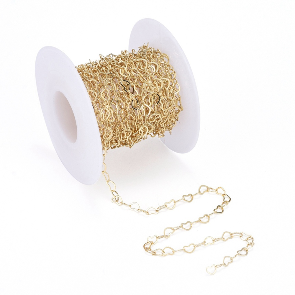 Cadena con forma de corazones soldada, chapado en oro 18k