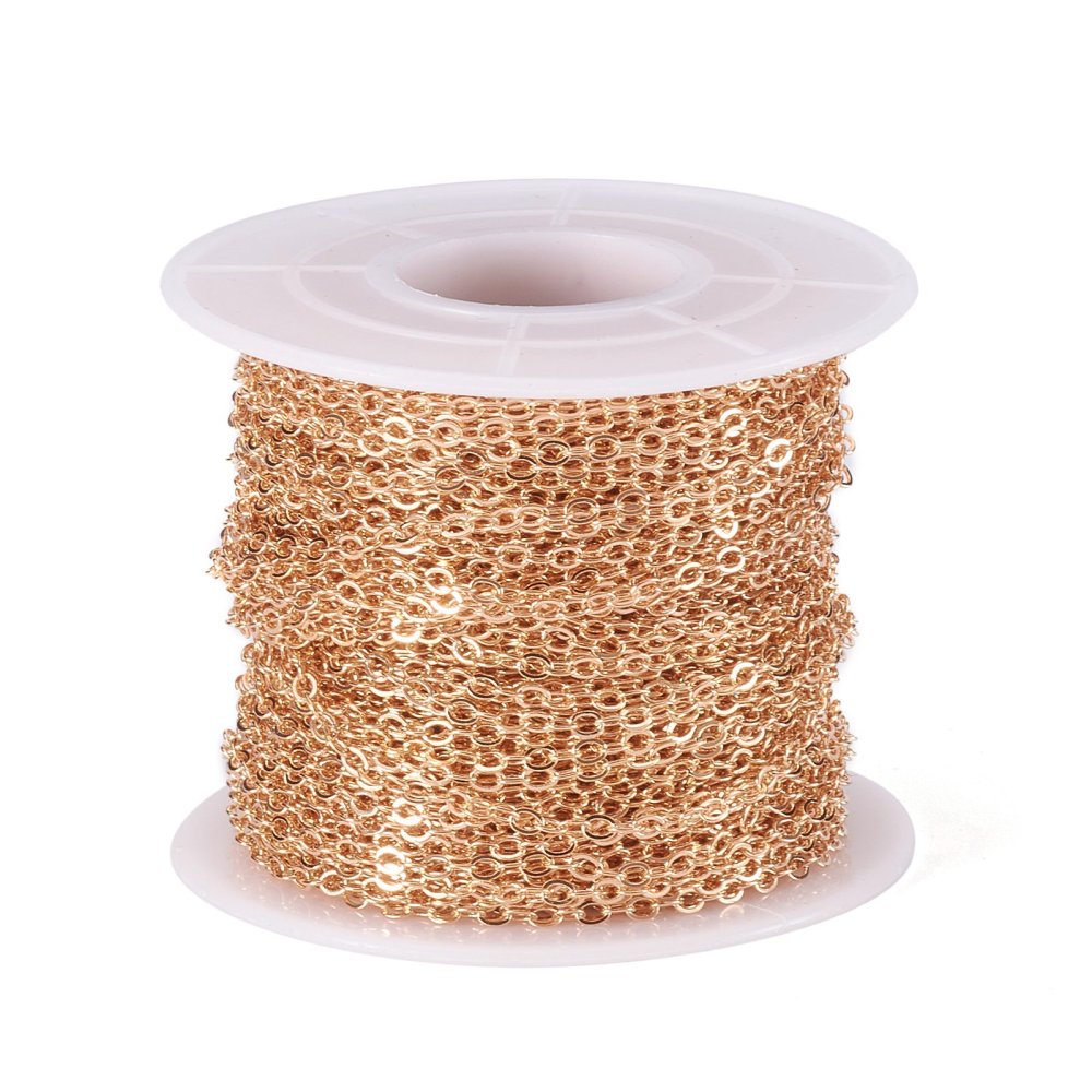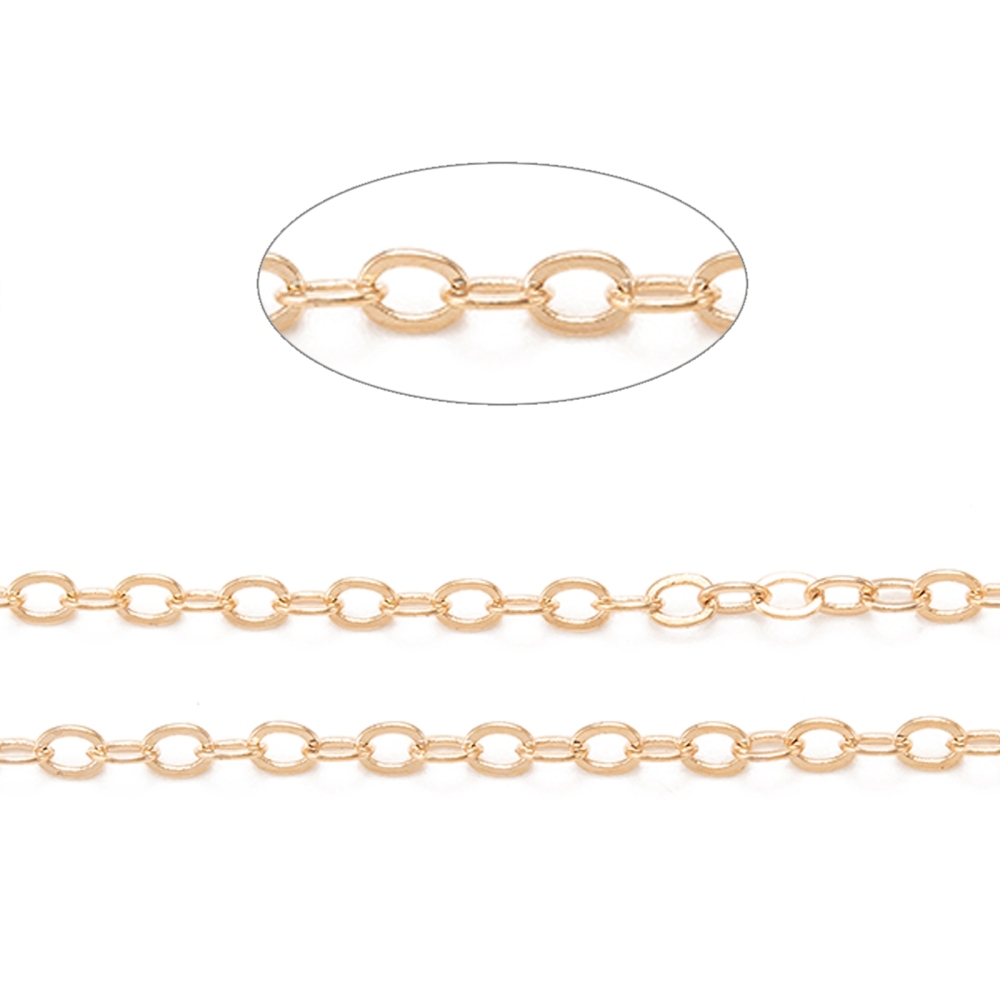 Cadena plano con forma de ovalo soldada, chapado en oro 18k