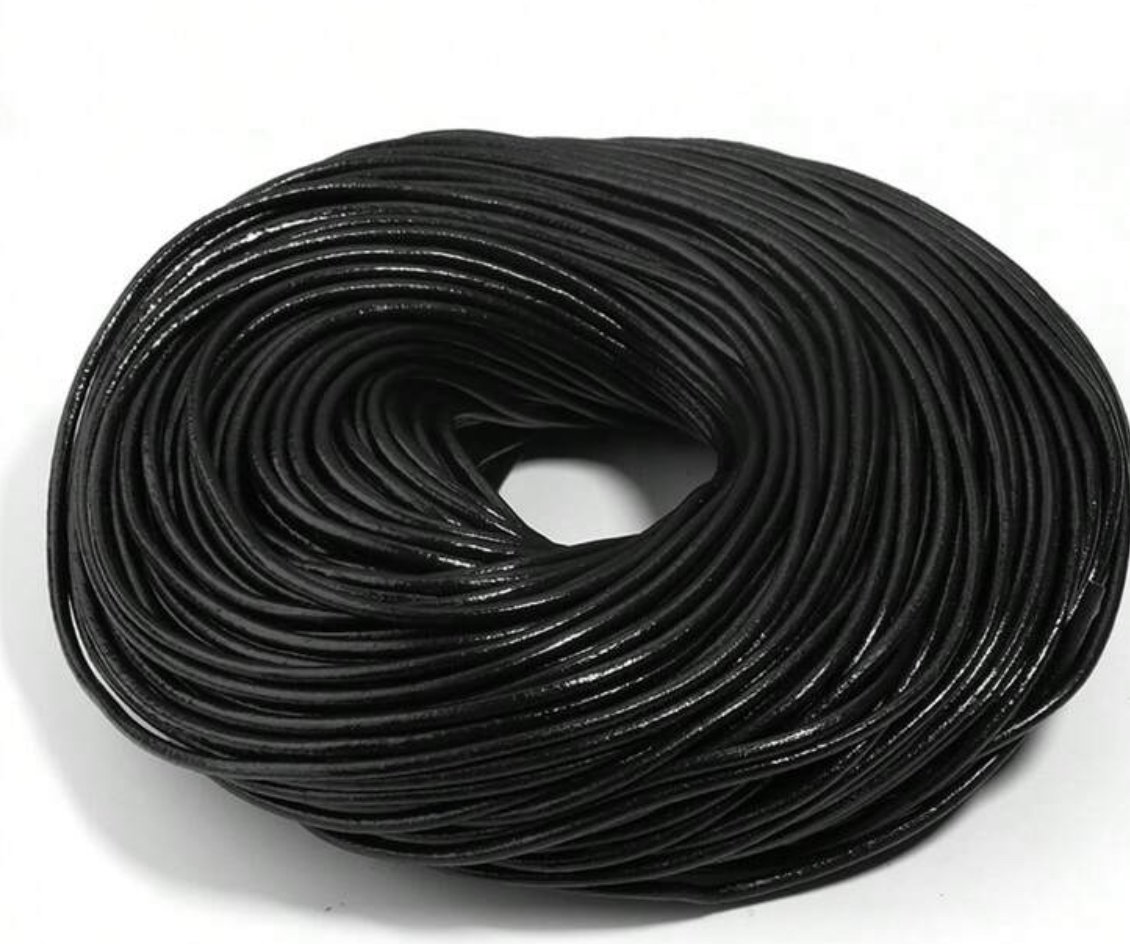 Cuero redondo de Vaca natural medida 5mm color Negro
