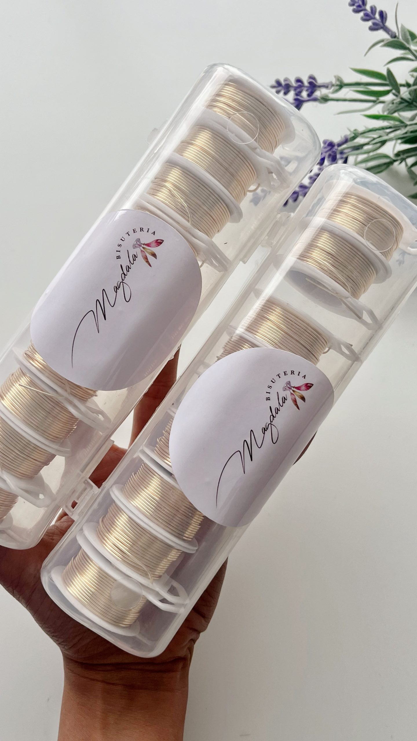 Estuche promocion: con la compra de 10 rollos de alambre, te enviamos un estuche de regalo. Puedes elegir el calibre que desees, liso, texturizado o entorchado. Armas tu pedido de alambres y nos encargamos del resto!