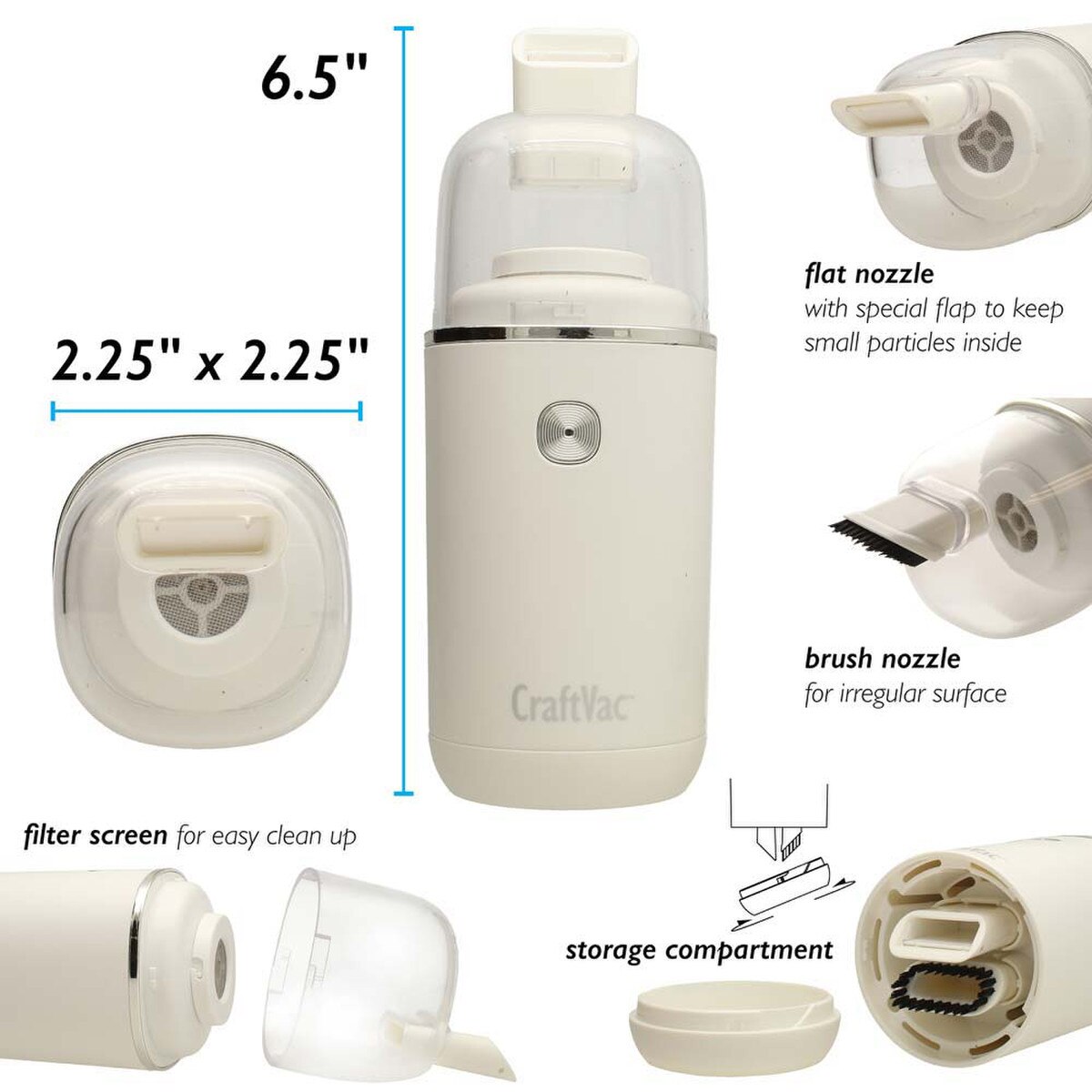 Con la CraftVac, experimentarás la comodidad de dos accesorios diferentes y niveles de succión ajustables, lo que garantiza que las cuentas, la purpurina, las gemas y otros pequeños materiales de manualidades se recojan fácilmente y se clasifiquen de forma ordenada. Las boquillas planas y de cepillo incluidas ofrecen versatilidad para abordar diversos tipos de suciedad, mientras que una cubierta transparente te permite vigilar lo que has recogido.