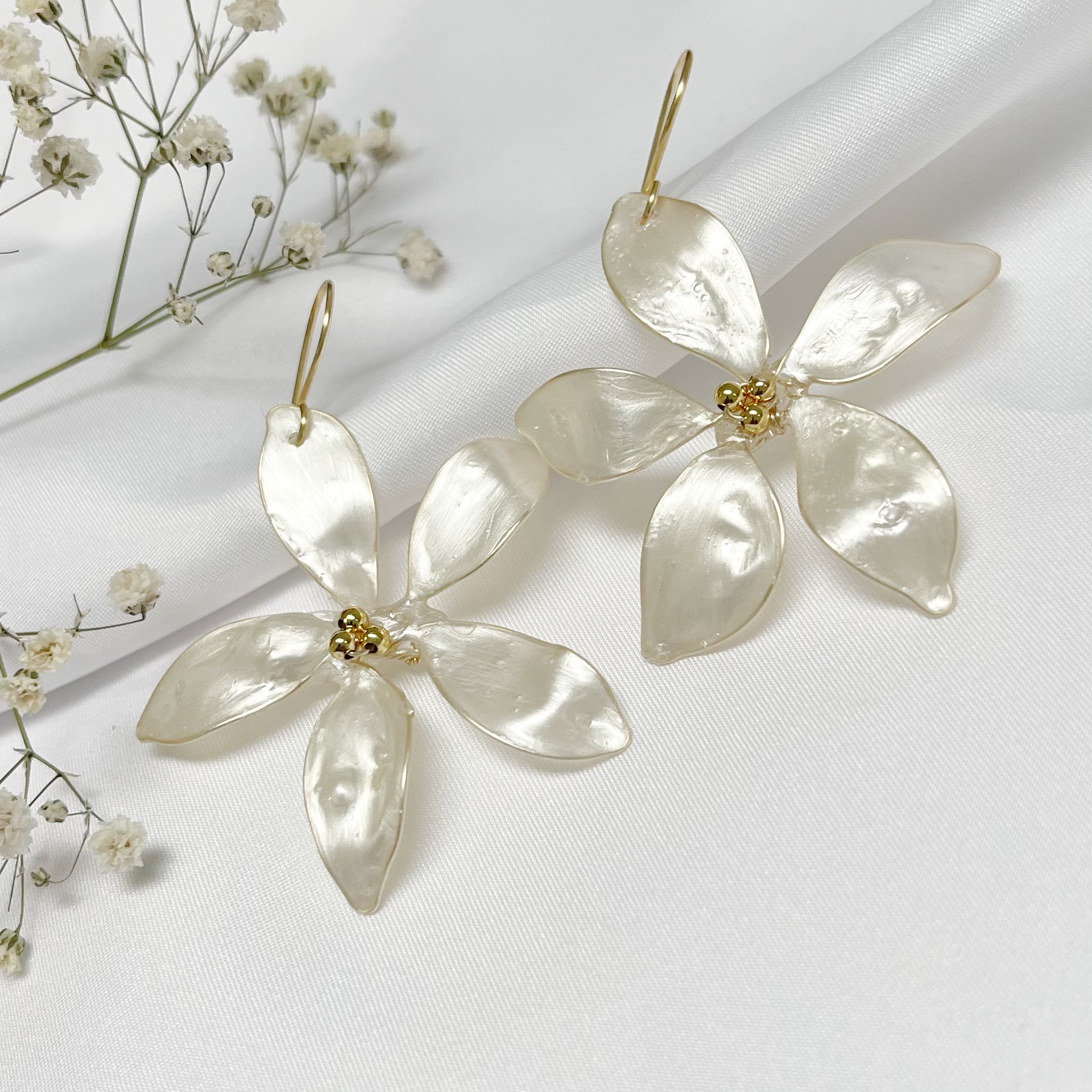 Estos pendientes forman parte de HIPNÓTICA, una colección donde las flores nacen del proceso creativo para transformarse en joyas.