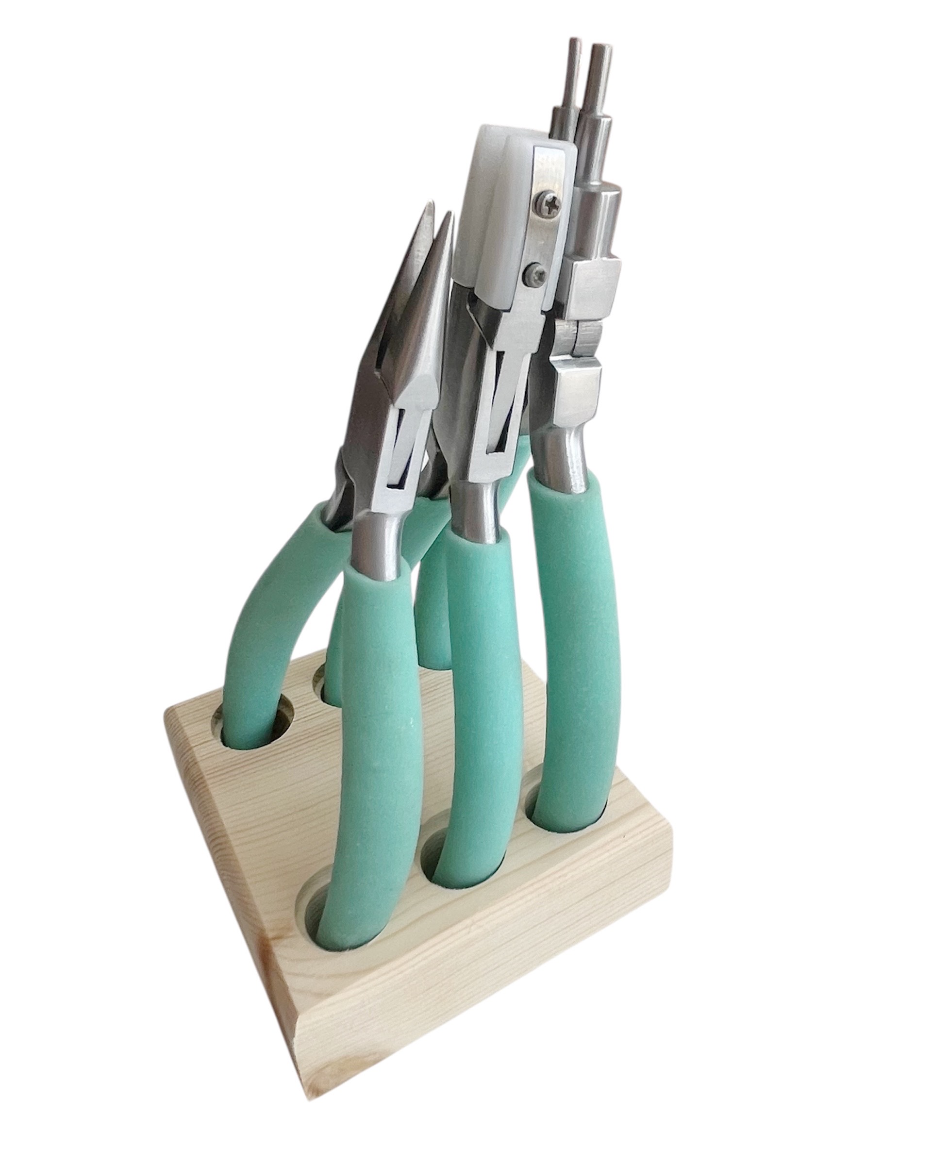 PORTA HERRAMIENTAS PARA 3 ALICATES, BASE DE MADERA. MEDIDA 7.5CM X 7.5CM