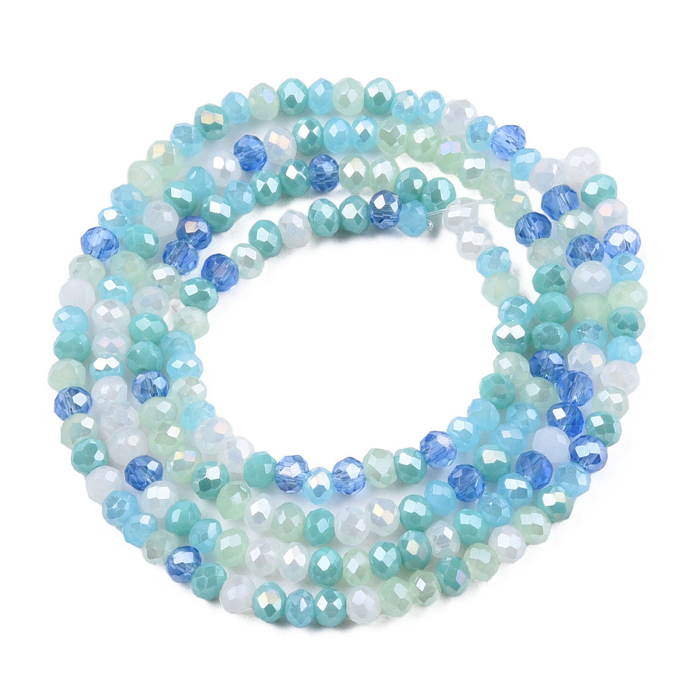 | Tira de cristal combinados electrochapado facetados rerondana plana, color luz azul cielo, 3×2.5mm, agujero: 0.7 mm, alrededor de 188~190 unidades(43~45 cm) |