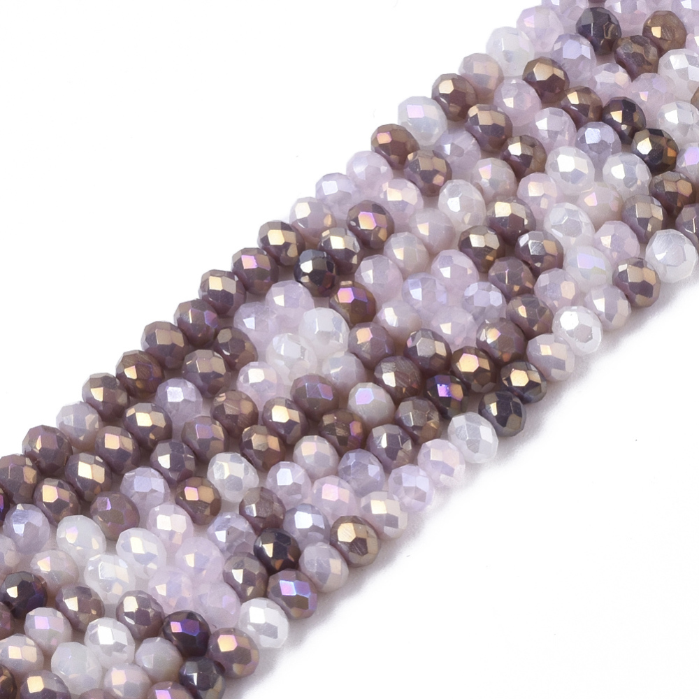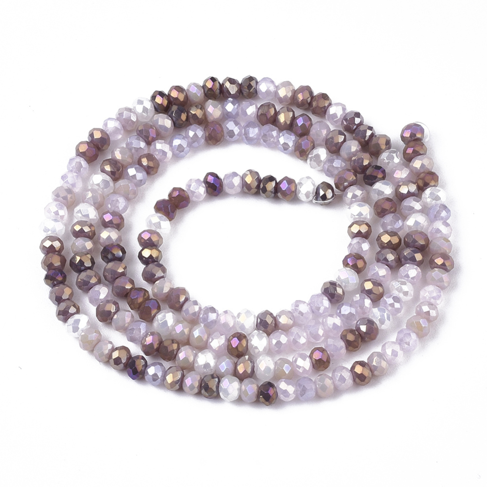 Tira de cristal combinados electrochapado facetados rerondana plana, color morado 3×2.5mm, agujero: 0.7 mm, alrededor de 188~190 pieza (43~45 cm)