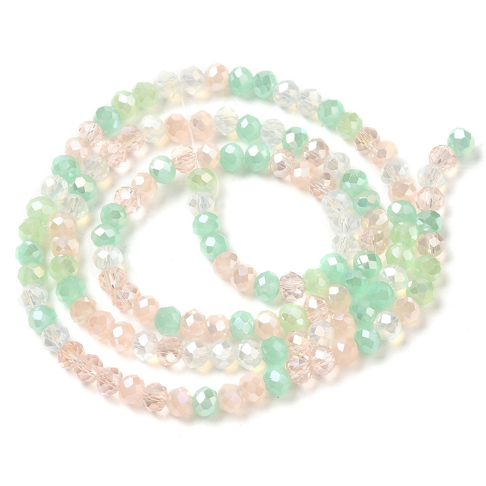 Tira de cristal combinados electrochapado facetados rerondana plana, color rosa+turqueza, 4mm, agujero: 1 mm, aproximamente 130 pcs / cadena, 18.31 pulgada (46.5 cm)
