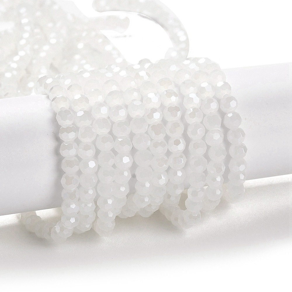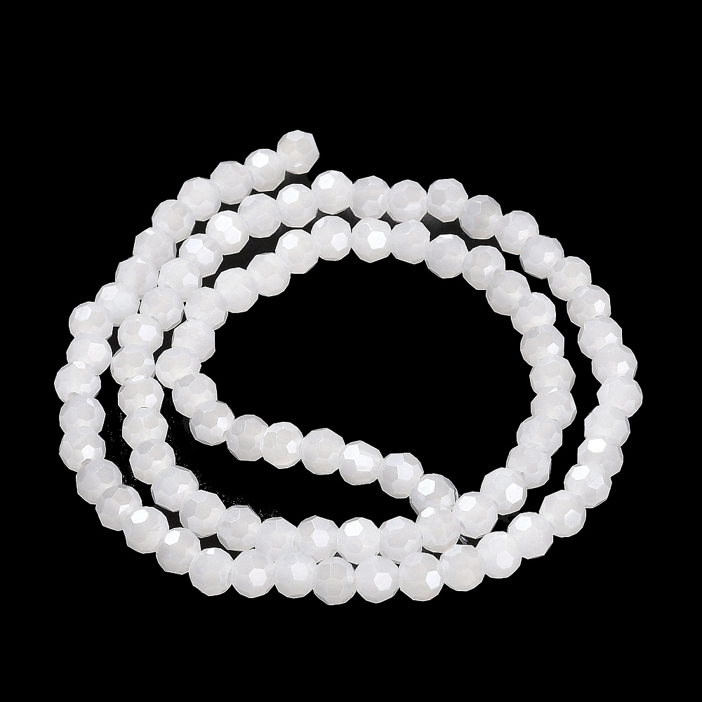 Tira de cristal electrochapado, facetado, redondo,color blanco humo perlado, 4mm, agujero: 0.7 mm, aproximamente 87~93 pcs / cadena, 32~33 cm
