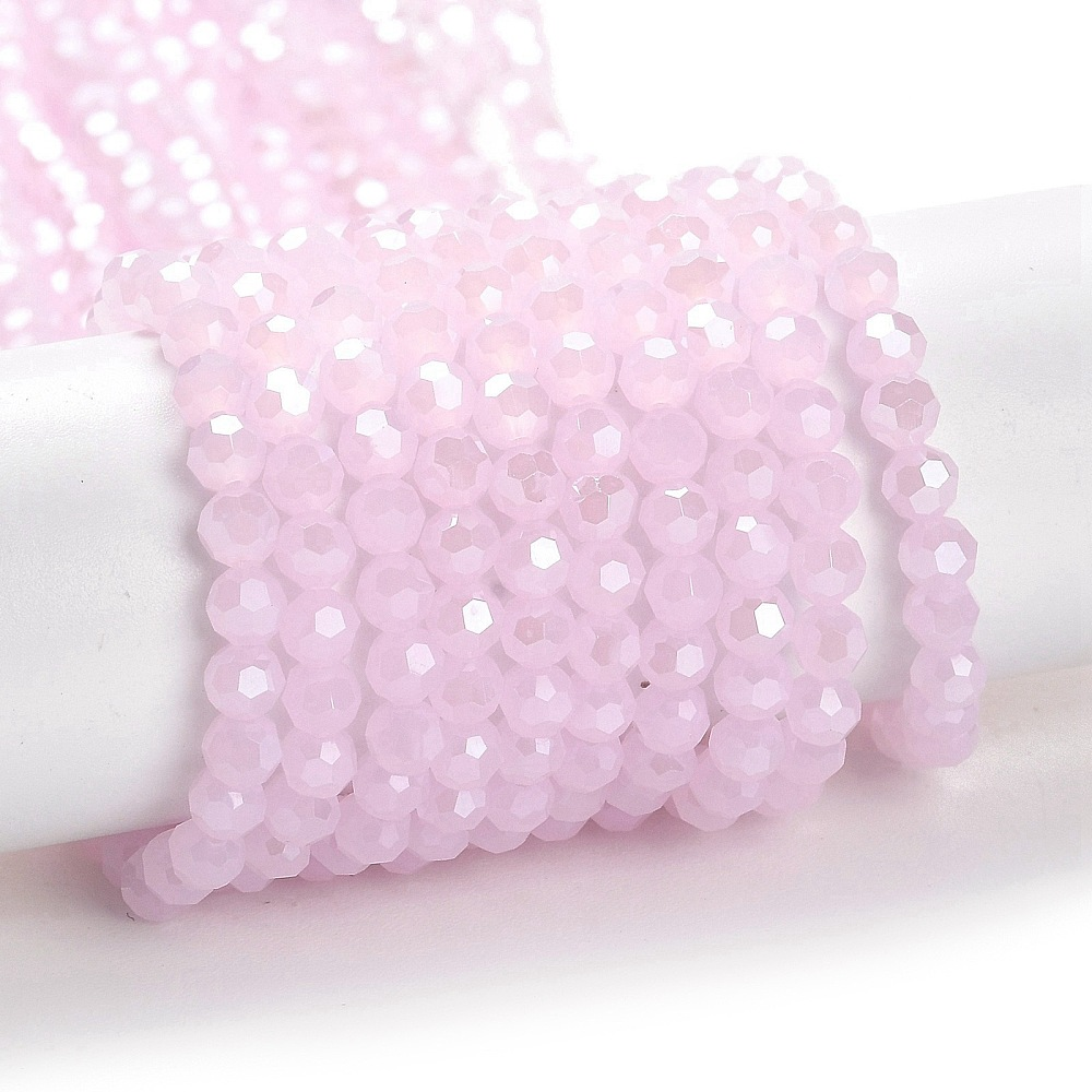 Tira de cristal electrochapado, facetado, redondo,color rosa perla perlado, 4mm, agujero: 0.7 mm, aproximamente 87~93 pcs / cadena, 32~33 cm