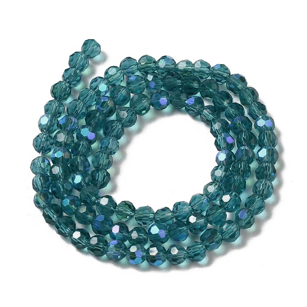 Tira de cristal Electrochapado transparentes, facetados, redondo, color turquesa oscuro 4mm, agujero: 0.7 mm, aproximamente 87~93 pcs