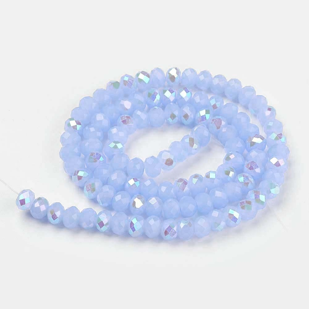 | Tira de cristal electrochapado facetados rerondana plana, color azul claro 4x3mm, agujero: 0.4 mm, aproximadamente 113~115 piezas / cadena, 41~42 c |