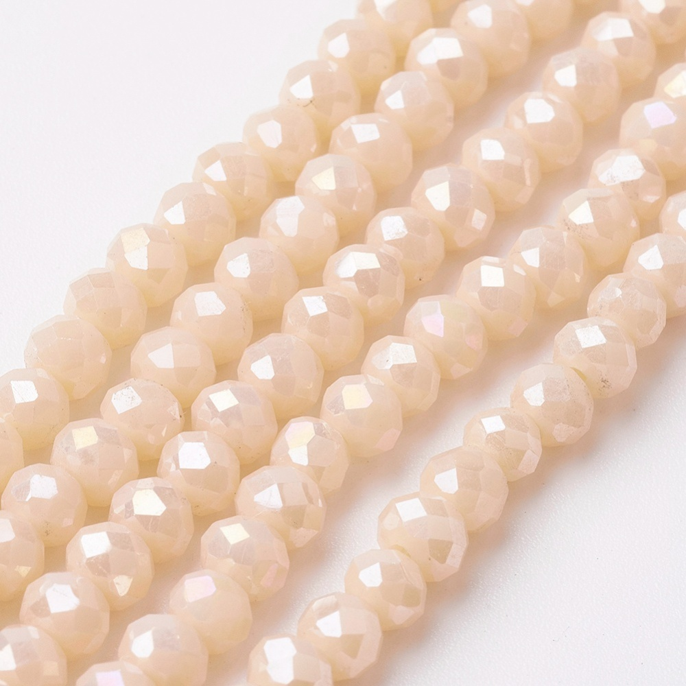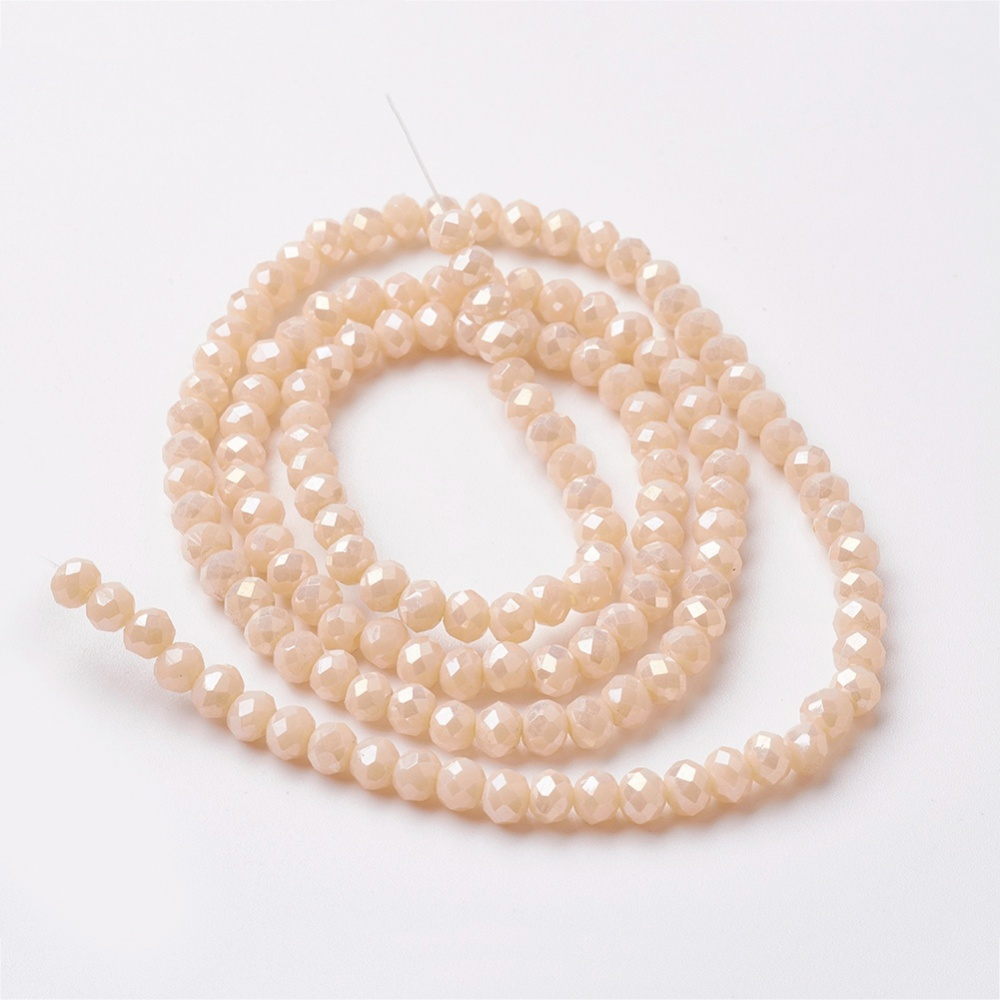Tira de cristal electrochapado facetados rerondana plana, color crema, medida 4~4.5x3mm, agujero: 0.5 mm, aproximadamente 130~135 piezas (39~40 cm)