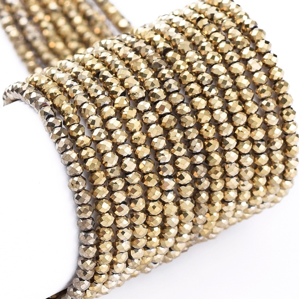 Tira de cristal electrochapado,facetados, rerondana plana, color dorado , 2×1.5mm, agujero: 0.6 mm, aprox 235~247 pcs / cadena(37~37.5 cm)
