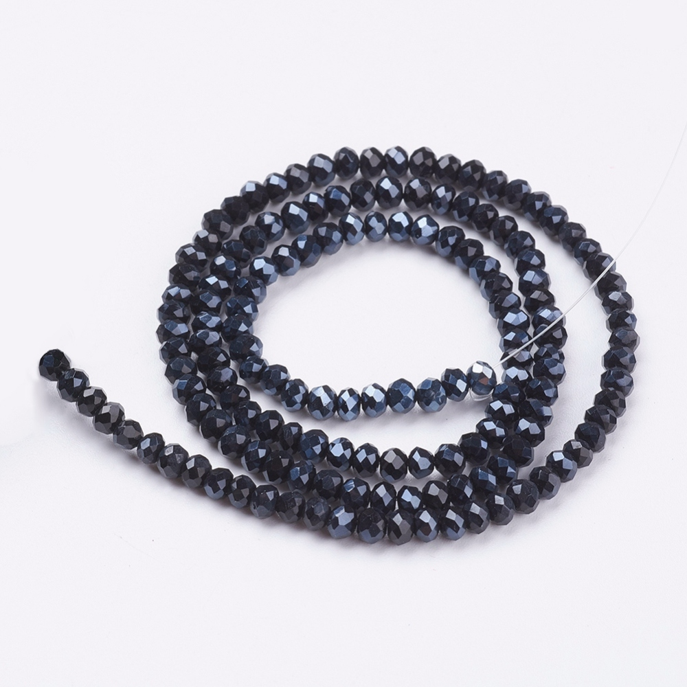 Tira de cristal electrochapado facetados, rerondana plana, color negro, 2.9~3.3x2mm, agujero: 0.5 mm, aproximadamente 113~115 piezas/cadena, 32~33 cm