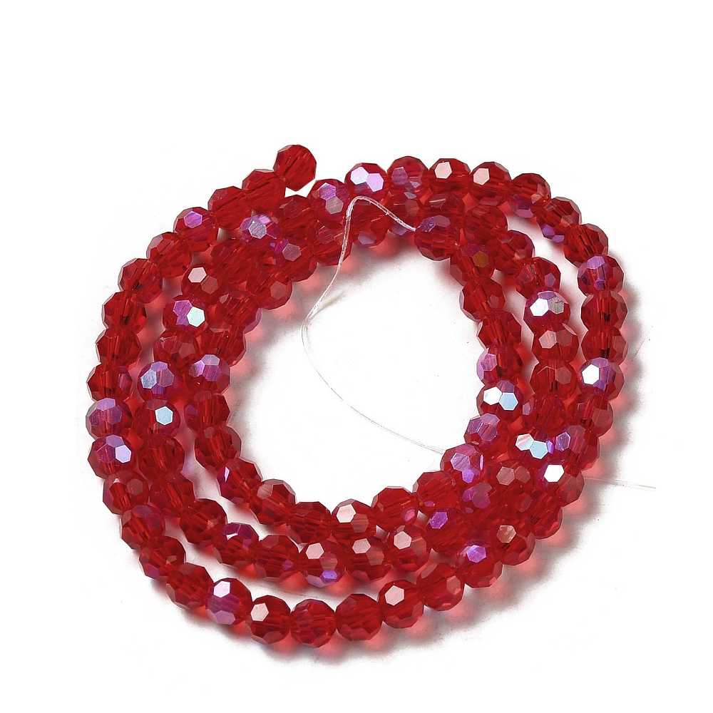 Tira de cristal Electrochapado transparentes, facetados, redondo, color rojo oscuro 4mm, agujero: 0.7 mm, aproximamente 87~93 pcs / cadena, 32~33 cm