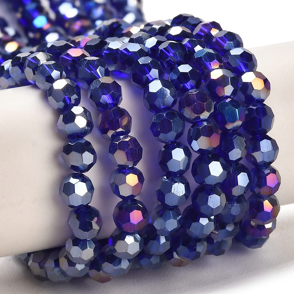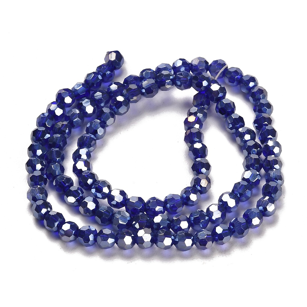 Tira de cristal facetadas, redondo electrochapado, color azul oscuro 4mm, agujero: 1 mm, aproximamente 87~93 pcs / cadena, 32~33 cm
