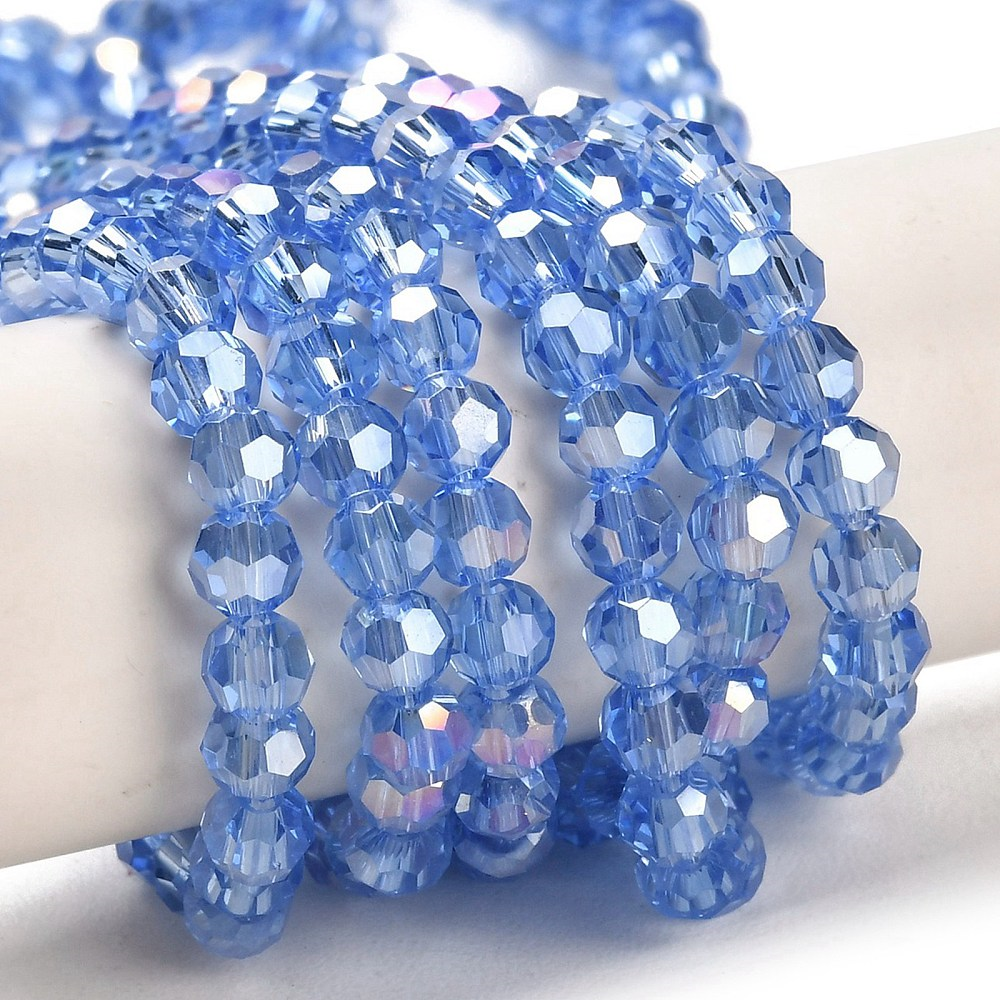 Tira de cristal facetadas, redondo, color celeste 4mm, agujero: 1 mm, aproximamente 87~93 pcs / cadena, 32~33 cm