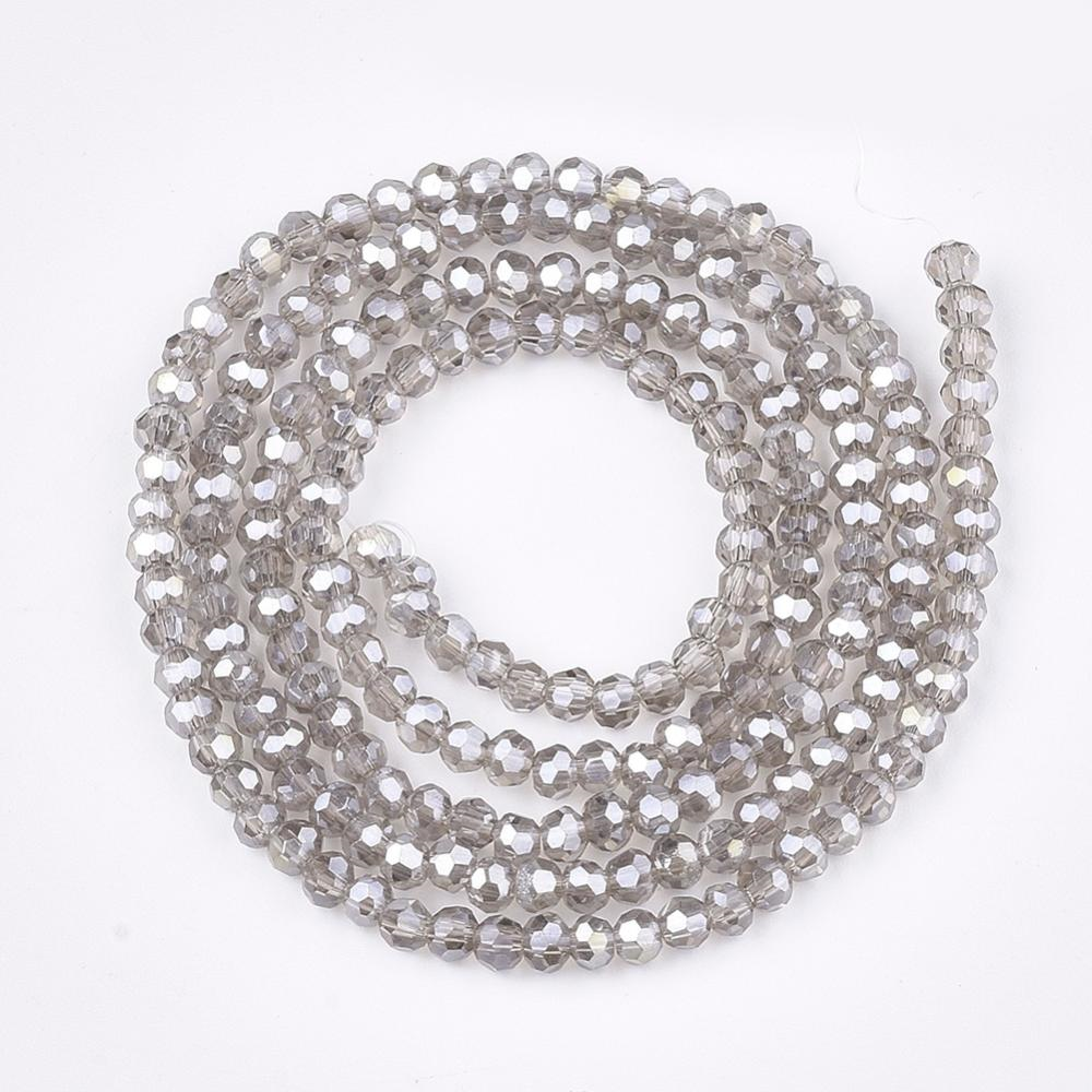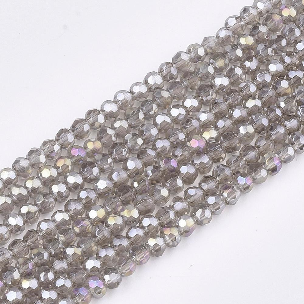 Tira de cristal facetadas electrochapado, redondo, color gris claro