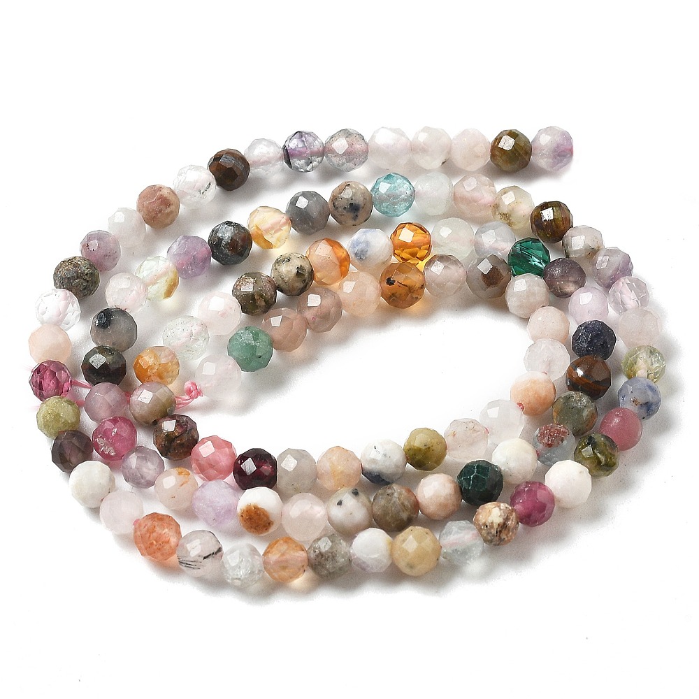 Tira de piedra natural facetados, redondo, 4mm, agujero: 0.7 mm, aproximamente 85~88 pcs