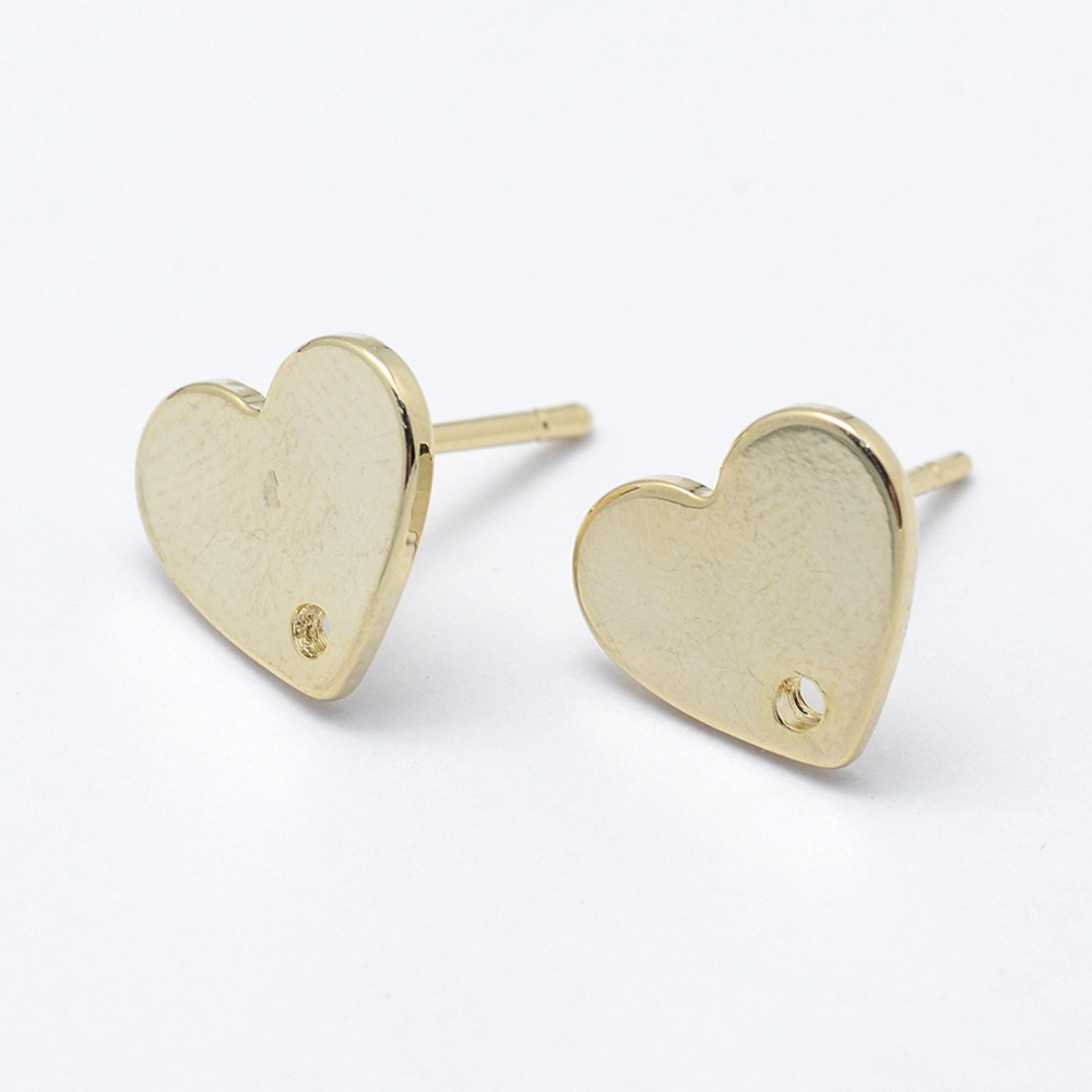 Topos Corazon baƱo 18K , medida 9.5x11x1 mm, agujero: 1 mm, pin: 0.8 mm, valor por par